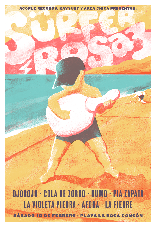 Afiche para la tercera versión de festival "Surfer Rosa" en playa La Boca, Concón.